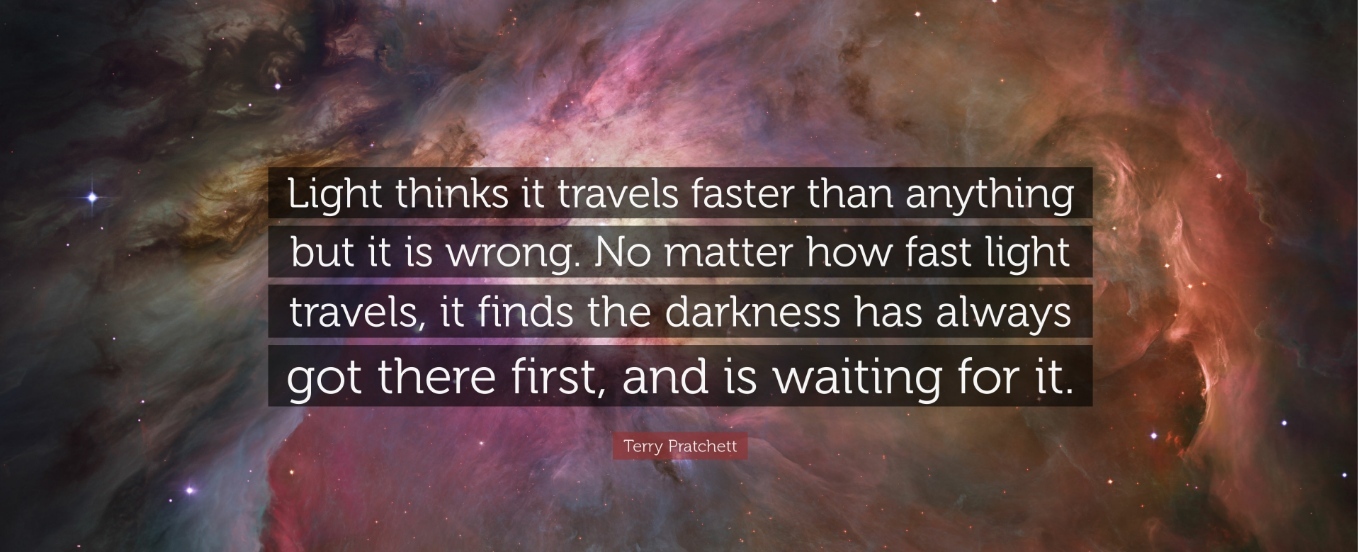 "Light thinks it travels faster than anything but it is wrong. No matter how fast light travels, it finds the darkness has got there first, and is waiting for it".