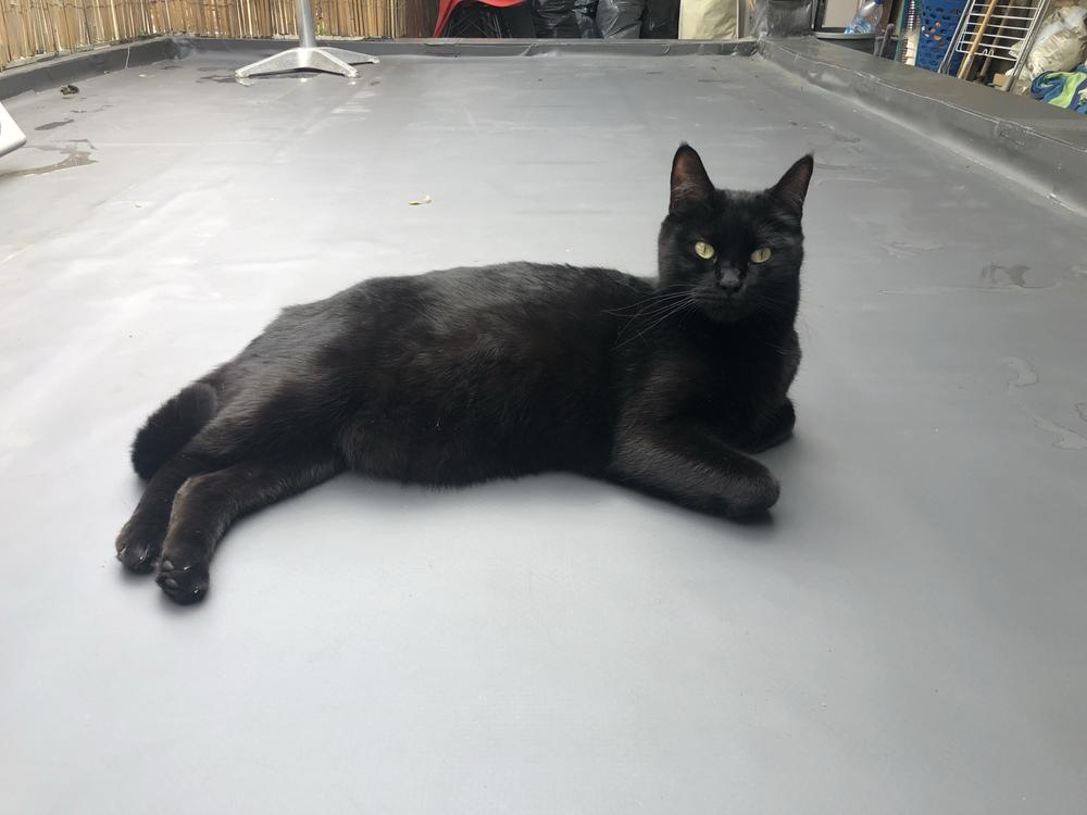 There's a mare black and shining with yellow hair,