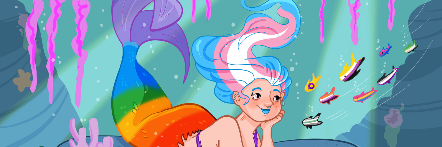 Die Meerjungfrauengrotte ist eine queerfreundliche Mastodon-Instanz für das Meervolk und für alle Landmenschen, die das Meer lieben. Auf diesem Account trötet die Admina (Michaela Molthagen) aktuelle Informationen zur Instanz. BiBesch Profilbild und Banner: Zeichnung einer liegenden Meerjungfrau mit Fischschwanz in den Farben der Pride Flagge und Haare in den Trans-Pride-Farben. Daneben einige Fische in weitere Pride-Farben.