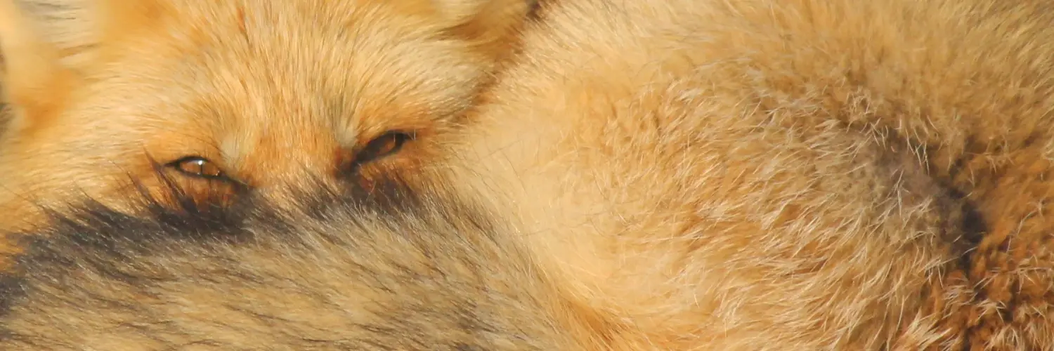 header image alt text: curled up, fluffy fox with a tail obscuring its nose