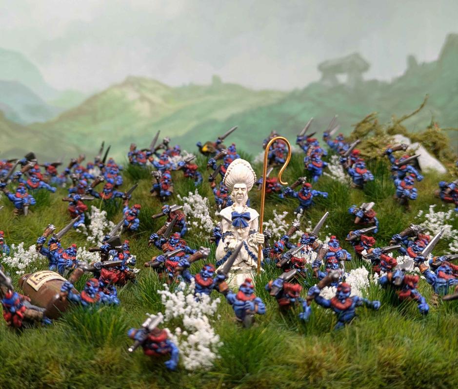 Banner picture: an army of Nac Mac Feegle run past a shepherdess model towards you aiming for a fight!