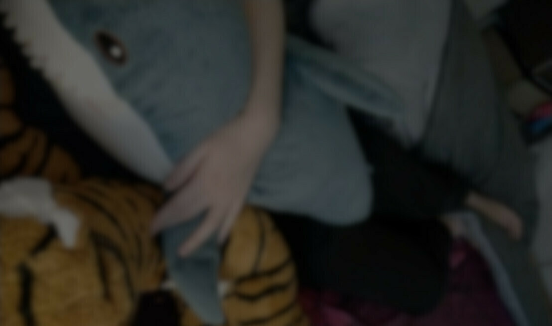 Girlfriend lying across the bed, sleeping in her bathrobe with her legs resting on my tummy, I made her walk a lot today, poor kitty 🥺 I'm gently stroking her leg and paw
